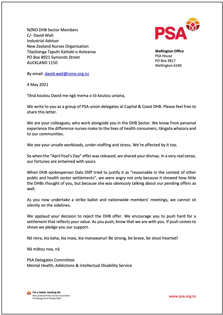 We write to you as a group of PSA union delegates at Capital & Coast DHB. Please feel free to share this letter.