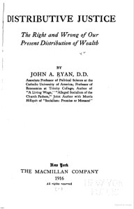 There is a footnote in the book to this excerpt from Justice Frazer’s decision. “This pronouncement is also an almost verbatim quotation from John A. Ryan, Distributive Justice: The right and wrong of our present distribution of wealth, MacMillan 1916.” This heavyweight tract of American political philosophy from the middle of World War One is a polemic against socialism, defending private ownership of land and industry, giving moral justification for the profit-making of “the business man” and arguing that industrial unionism goes against “human nature”.